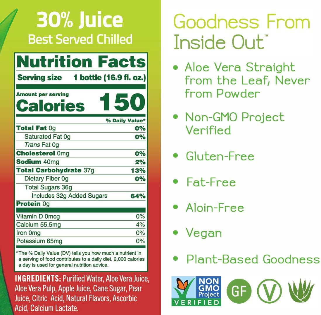 FARM-TO-BOTTLE DELICIOUSNESS: Great flavor comes from using real fruit and vegetable juices as well as organic and other fine ingredients combined with real, fresh aloe juice and pulp; No artificial anything