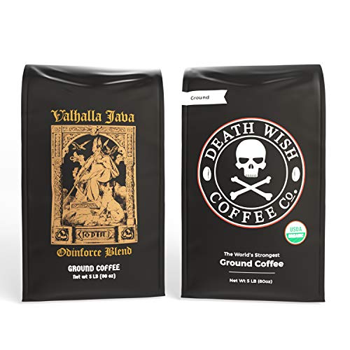 Experience the powerful combination of the World’s Strongest Coffee with the coffee carefully crafted for the world’s most powerful guitarist, Zakk Wylde – Death Wish Coffee 5-lb Ground Coffee and Valhalla Java 5-lb Ground Coffee Bundle. This variety pack delivers a smooth, never bitter blend of intense flavor that’s bold enough to keep up with you as you go about your busy day. Enjoy the subtle notes of cherry and chocolate with every sip, expertly made using the premium Arabica and Robusta beans, and low carb, dairy-free, and keto-friendly ingredients. Death Wish Coffee uses both beans sourced mainly from India and Peru, while Valhalla Java Coffee uses a blend of beans sourced from Honduras, Guatemala, Sumatra, Peru, and India. Feel proud knowing that every cup of this brewed coffee from our variety bundle was made with Fair Trade, USDA Certified Organic coffee beans, giving you a natural caffeine boost while empowering our farmers from around the world. This combination takes everyone’s coffee addiction seriously which makes it the best gift set for your friends and loved ones at any occasion. Show how you truly care by giving them the coffee they deserve and need. Coffee lovers out there should start stocking up on this best coffee combo that you can ever find. Never miss this chance to experience this one-of-a-kind bundle deal that will surely satisfy your intense love for coffee. Add this to your cart and buy one today!