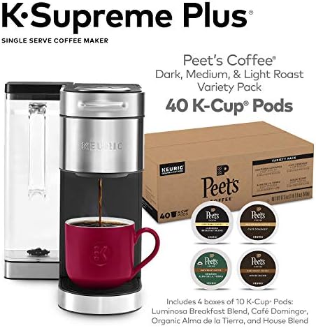 Keurig K-Supreme Plus Coffee Maker, Stainless Steel + Peet's Coffee Dark, Medium, & Light Roast K-Cup Coffee Pods for Keurig Brewers, Pods, Variety Pack, 40 Count