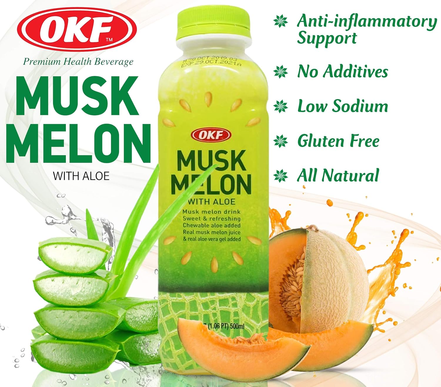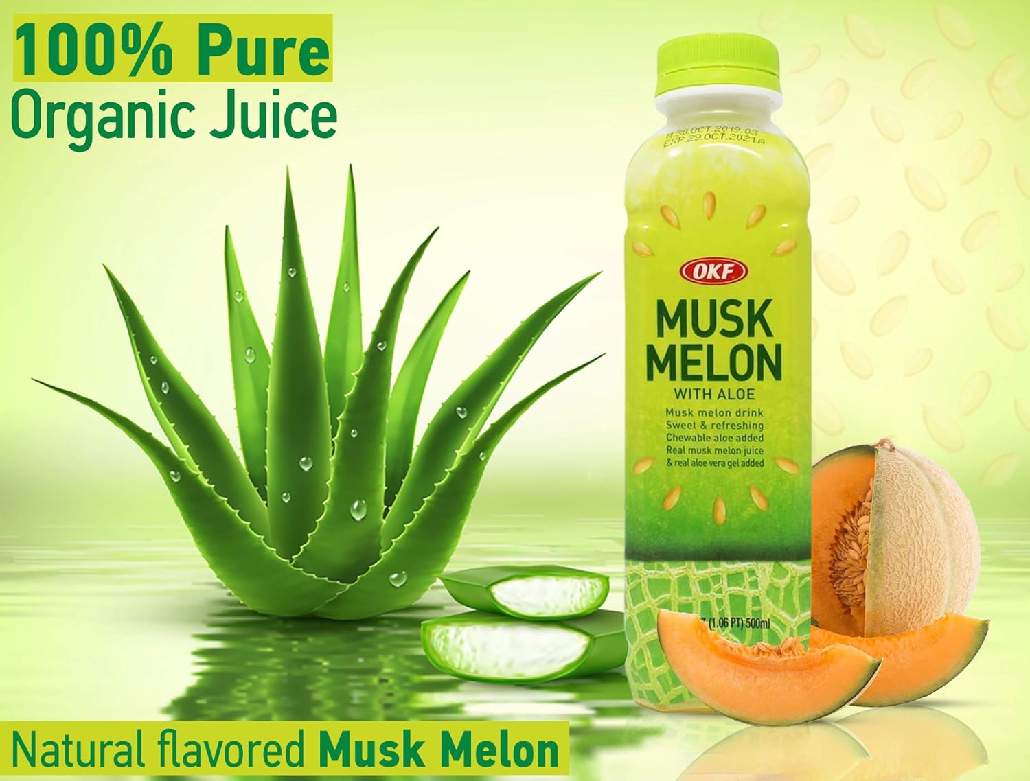 Why Choose OKF We at OKF promise to provide the best quality melon Juice. Our OKF Musk Melon aloe Vera juice is made with 100% Pure ingredients & we always choose top of the range raw material to prepare our Healthy Delicious Watermelon Aloe Vera Juice. Features Each Aloe Vera drink is fat free, low sodium, vegan, gluten free and free from concentrates and artificial colors. Where to Drink Musk melon Aloe Vera Juice is Perfect to have at anytime & anywhere. You can have our Juice in your lunch box or with Snacks. You can take this juice at the field or just enjoy our amazing juice on the way. Our Bottle Our bottle comes in an Exclusive design which makes our melon Aloe Vera juice look more attractive. Our Bottle is slim & anyone can easily hold & drink the delicious & healthy juice. Our OKF bottle contains 500 ML Juice . Benefits Aloe Vera juice is said to help maintain healthy digestion, and can also help regulate blood sugar, reduce inflammation, reduce acne eruptions, as well as many other health benefits, and is a good addition for those who are conscious of an alkaline diet. OKF Watermelon and aloe Vera juice is light, refreshing and can help ease digestive ailments, as well as provide other health benefits. Our Taste is our recognition Our melon Aloe Vera drinks are sweetened with only a touch of pure sugar cane and naturally flavored with other natural flavors for a sensational taste. Customer Satisfaction If you have any query regarding our Musk melon Aloe Vera Juice, then please feel free to contact us.
