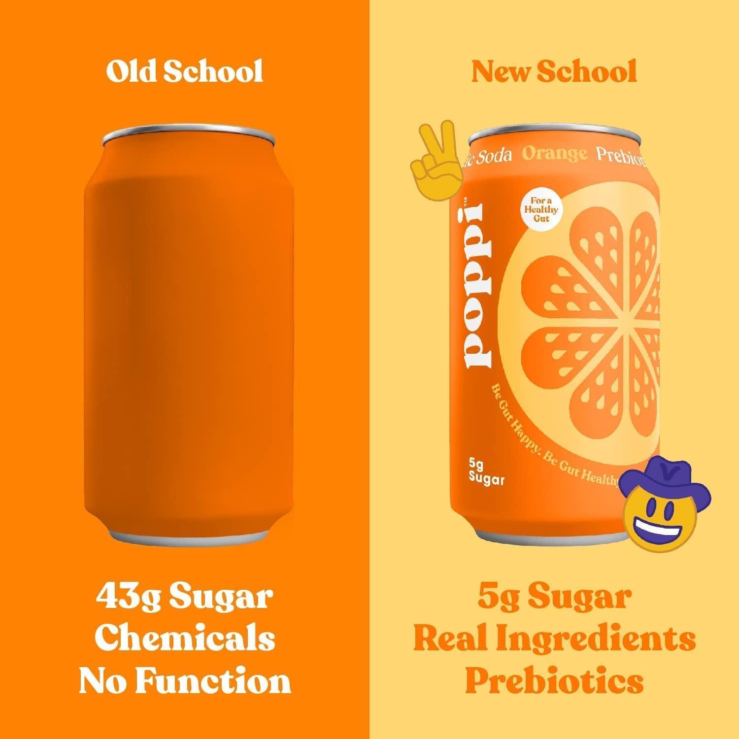 No fake stuff. Ever. Made with fresh fruit, 5g of sugar or less and 20 calories or less per can. Our ACV is in stealth mode, so all you taste is pure poppi flavor. This is the new school of soda!