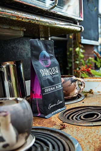 Spanglish Espresso Latino Style Ground Coffee, Medium-Dark Roast, Roasted in small batches, bold intense flavors, All-Natural,12 Ounce (ground)