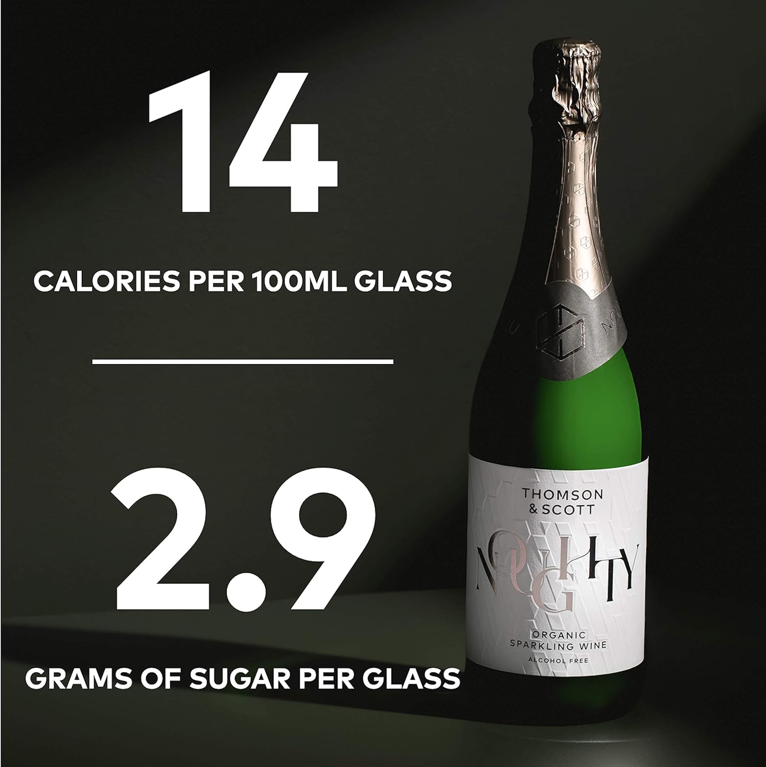 Thomson & Scott Noughty, Alcohol Free, Organic Sparkling Chardonnay Non Alcoholic, Low-Sugar, Halal Certified, Vegan, 750ml (Single)
