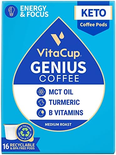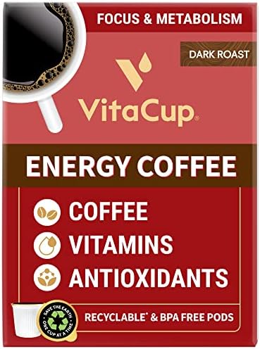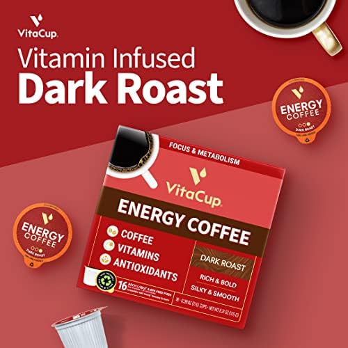 VitaCup Genius & Energy Dark Coffee Pods 32 ct Bundle Vitamin infused Recyclable Single Serve Pods Compatible with K-Cup Brewers Including Keurig 2.0